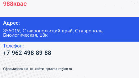 988квас по адресу 355019, Ставропольский край, Ставрополь, Биологическая, 18к в дальнейшем Организация, размещена в следующих категориях: