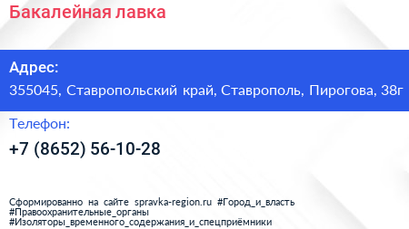 Бакалейная лавка по адресу 355045, Ставропольский край, Ставрополь, Пирогова, 38г в дальнейшем Организация, размещена в следующих категориях: