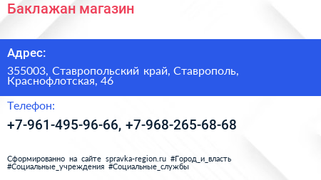 Баклажан, магазин по адресу 355003, Ставропольский край, Ставрополь, Краснофлотская, 46 в дальнейшем Организация, размещена в следующих категориях: