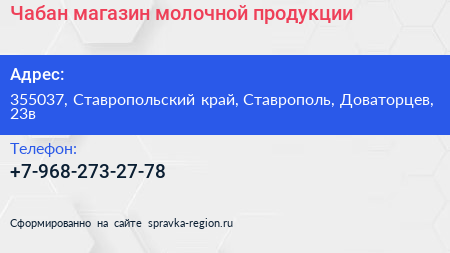 Чабан, магазин молочной продукции по адресу 355037, Ставропольский край, Ставрополь, Доваторцев, 23в в дальнейшем Организация, размещена в следующих категориях: