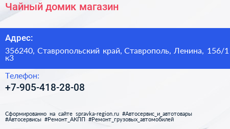 Чайный домик, магазин по адресу 356240, Ставропольский край, Ставрополь, Ленина, 156/1 к3 в дальнейшем Организация, размещена в следующих категориях: