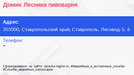Домик Лесника, пивоварня по адресу 355000, Ставропольский край, Ставрополь, Лесовод-5, 6 в дальнейшем Организация, размещена в следующих категориях: