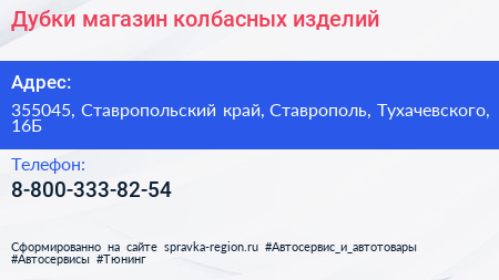 Дубки, магазин колбасных изделий по адресу 355045, Ставропольский край, Ставрополь, Тухачевского, 16Б в дальнейшем Организация, размещена в следующих категориях: