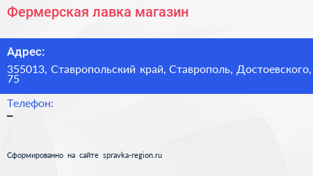 Фермерская лавка, магазин по адресу 355013, Ставропольский край, Ставрополь, Достоевского, 75 в дальнейшем Организация, размещена в следующих категориях: