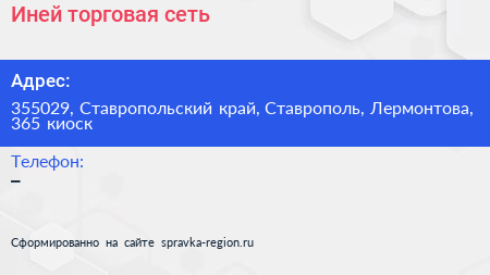 Иней, торговая сеть по адресу 355029, Ставропольский край, Ставрополь, Лермонтова, 365 киоск в дальнейшем Организация, размещена в следующих категориях: