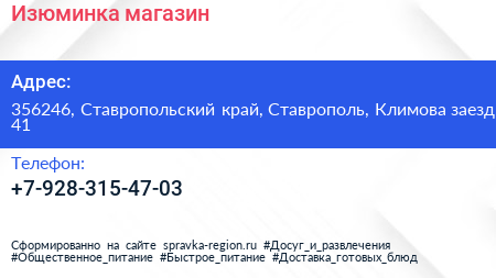 Изюминка, магазин по адресу 356246, Ставропольский край, Ставрополь, Климова заезд, 41 в дальнейшем Организация, размещена в следующих категориях: