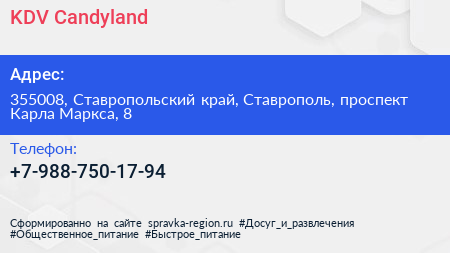 KDV Candyland по адресу 355008, Ставропольский край, Ставрополь, проспект Карла Маркса, 8 в дальнейшем Организация, размещена в следующих категориях: