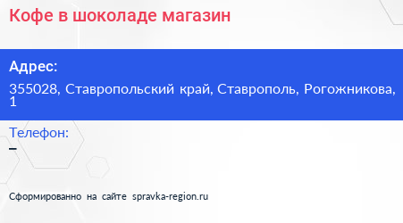 Кофе в шоколаде, магазин по адресу 355028, Ставропольский край, Ставрополь, Рогожникова, 1 в дальнейшем Организация, размещена в следующих категориях: