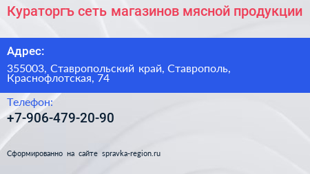 Кураторгъ, сеть магазинов мясной продукции по адресу 355003, Ставропольский край, Ставрополь, Краснофлотская, 74 в дальнейшем Организация, размещена в следующих категориях:
