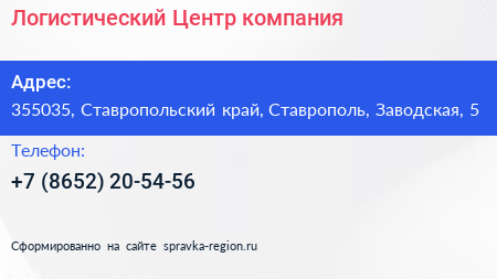 Логистический Центр, компания по адресу 355035, Ставропольский край, Ставрополь, Заводская, 5 в дальнейшем Организация, размещена в следующих категориях: