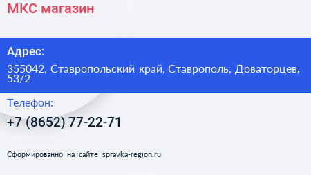 МКС, магазин по адресу 355042, Ставропольский край, Ставрополь, Доваторцев, 53/2 в дальнейшем Организация, размещена в следующих категориях: