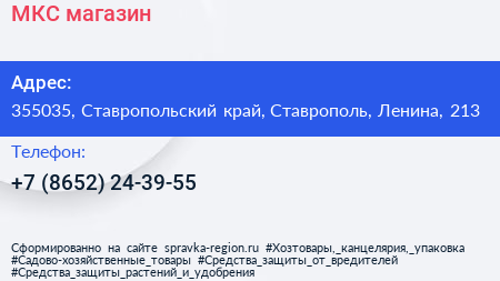 МКС, магазин по адресу 355035, Ставропольский край, Ставрополь, Ленина, 213 в дальнейшем Организация, размещена в следующих категориях: