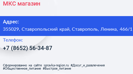 МКС, магазин по адресу 355029, Ставропольский край, Ставрополь, Ленина, 466/1 в дальнейшем Организация, размещена в следующих категориях: