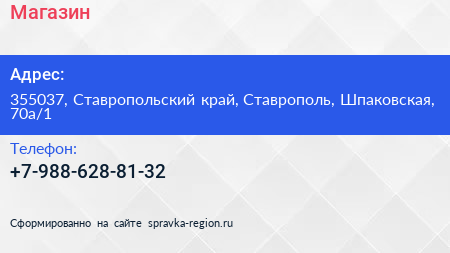 Магазин по адресу 355037, Ставропольский край, Ставрополь, Шпаковская, 70а/1 в дальнейшем Организация, размещена в следующих категориях: