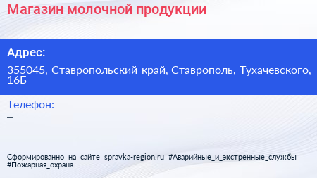 Магазин молочной продукции по адресу 355045, Ставропольский край, Ставрополь, Тухачевского, 16Б в дальнейшем Организация, размещена в следующих категориях: