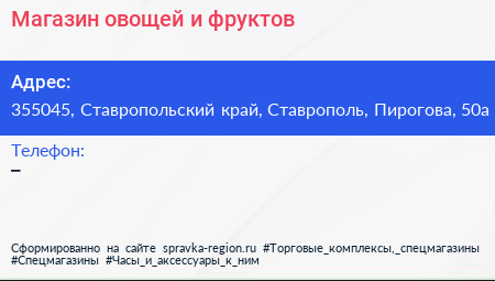 Магазин овощей и фруктов по адресу 355045, Ставропольский край, Ставрополь, Пирогова, 50а в дальнейшем Организация, размещена в следующих категориях: