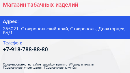 Магазин табачных изделий по адресу 355021, Ставропольский край, Ставрополь, Доваторцев, 86/1 в дальнейшем Организация, размещена в следующих категориях: