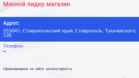 Мясной лидер, магазин по адресу 355045, Ставропольский край, Ставрополь, Тухачевского, 12Б в дальнейшем Организация, размещена в следующих категориях: