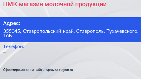 НМК, магазин молочной продукции по адресу 355045, Ставропольский край, Ставрополь, Тухачевского, 16Б в дальнейшем Организация, размещена в следующих категориях: