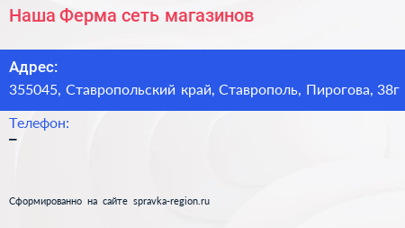 Наша Ферма, сеть магазинов по адресу 355045, Ставропольский край, Ставрополь, Пирогова, 38г в дальнейшем Организация, размещена в следующих категориях: