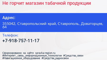 Не горчит, магазин табачной продукции по адресу 355042, Ставропольский край, Ставрополь, Доваторцев, 64 в дальнейшем Организация, размещена в следующих категориях: