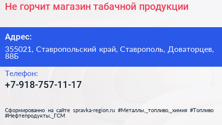 Не горчит, магазин табачной продукции по адресу 355021, Ставропольский край, Ставрополь, Доваторцев, 88Б в дальнейшем Организация, размещена в следующих категориях: