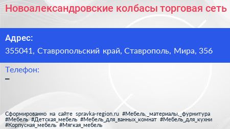 Новоалександровские колбасы, торговая сеть по адресу 355041, Ставропольский край, Ставрополь, Мира, 356 в дальнейшем Организация, размещена в следующих категориях: