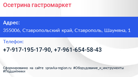 Осетрина, гастромаркет по адресу 355006, Ставропольский край, Ставрополь, Шаумяна, 1 в дальнейшем Организация, размещена в следующих категориях: