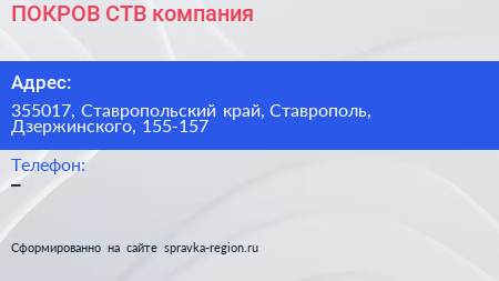 ПОКРОВ СТВ, компания по адресу 355017, Ставропольский край, Ставрополь, Дзержинского, 155-157 в дальнейшем Организация, размещена в следующих категориях: