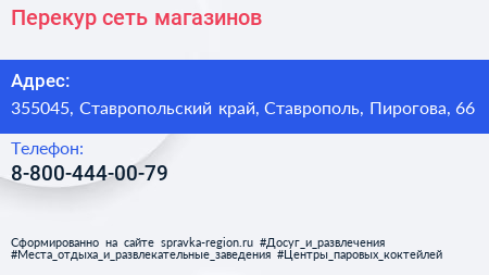 Перекур, сеть магазинов по адресу 355045, Ставропольский край, Ставрополь, Пирогова, 66 в дальнейшем Организация, размещена в следующих категориях: