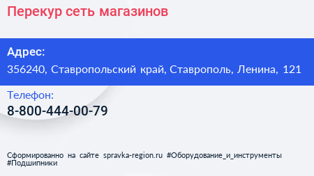 Перекур, сеть магазинов по адресу 356240, Ставропольский край, Ставрополь, Ленина, 121 в дальнейшем Организация, размещена в следующих категориях:
