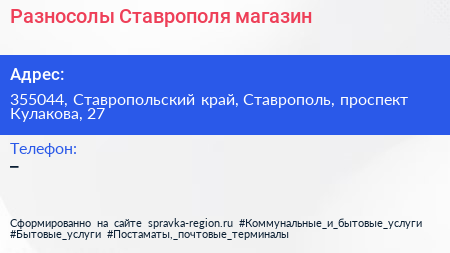 Разносолы Ставрополя, магазин по адресу 355044, Ставропольский край, Ставрополь, проспект Кулакова, 27 в дальнейшем Организация, размещена в следующих категориях: