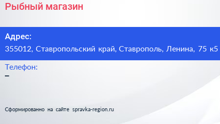Рыбный магазин по адресу 355012, Ставропольский край, Ставрополь, Ленина, 75 к5 в дальнейшем Организация, размещена в следующих категориях:
