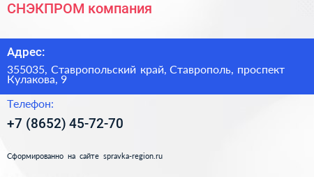 СНЭКПРОМ, компания по адресу 355035, Ставропольский край, Ставрополь, проспект Кулакова, 9 в дальнейшем Организация, размещена в следующих категориях: