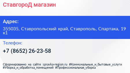 СтавгороД, магазин по адресу 355035, Ставропольский край, Ставрополь, Спартака, 19 к1 в дальнейшем Организация, размещена в следующих категориях: