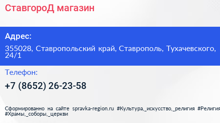 СтавгороД, магазин по адресу 355028, Ставропольский край, Ставрополь, Тухачевского, 24/1 в дальнейшем Организация, размещена в следующих категориях: