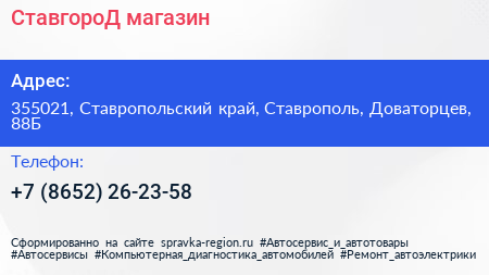 СтавгороД, магазин по адресу 355021, Ставропольский край, Ставрополь, Доваторцев, 88Б в дальнейшем Организация, размещена в следующих категориях: