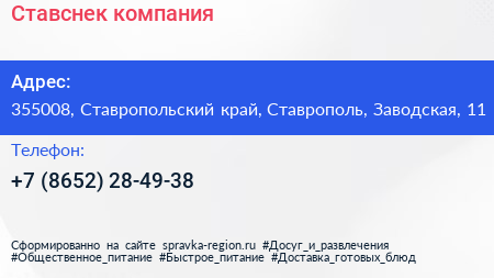 Ставснек, компания по адресу 355008, Ставропольский край, Ставрополь, Заводская, 11 в дальнейшем Организация, размещена в следующих категориях: