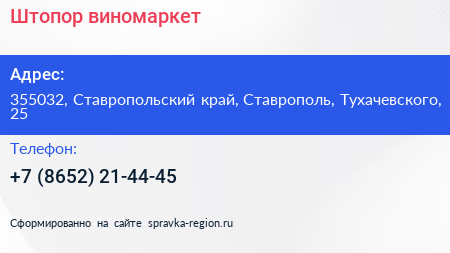 Штопор, виномаркет по адресу 355032, Ставропольский край, Ставрополь, Тухачевского, 25 в дальнейшем Организация, размещена в следующих категориях: