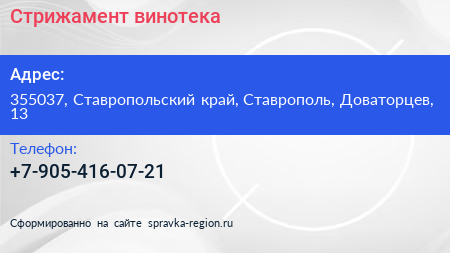 Стрижамент, винотека по адресу 355037, Ставропольский край, Ставрополь, Доваторцев, 13 в дальнейшем Организация, размещена в следующих категориях: