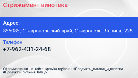 Стрижамент, винотека по адресу 355035, Ставропольский край, Ставрополь, Ленина, 228 в дальнейшем Организация, размещена в следующих категориях: