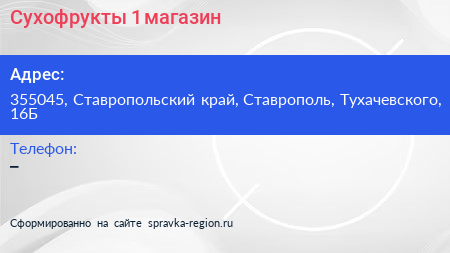 Сухофрукты №1, магазин по адресу 355045, Ставропольский край, Ставрополь, Тухачевского, 16Б в дальнейшем Организация, размещена в следующих категориях: