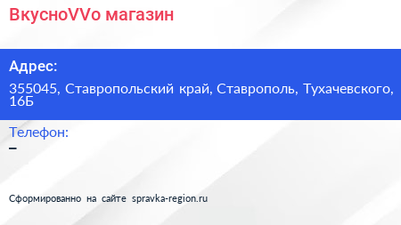 ВкусноVVo, магазин по адресу 355045, Ставропольский край, Ставрополь, Тухачевского, 16Б в дальнейшем Организация, размещена в следующих категориях: