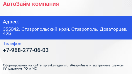 АвтоЗайм, компания по адресу 355042, Ставропольский край, Ставрополь, Доваторцев, 49Б в дальнейшем Организация, размещена в следующих категориях: