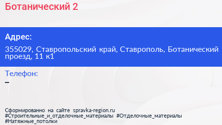 Ботанический-2 по адресу 355029, Ставропольский край, Ставрополь, Ботанический проезд, 11 к1 в дальнейшем Организация, размещена в следующих категориях: