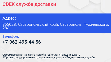 CDEK, служба доставки по адресу 355028, Ставропольский край, Ставрополь, Тухачевского, 28/1 в дальнейшем Организация, размещена в следующих категориях: