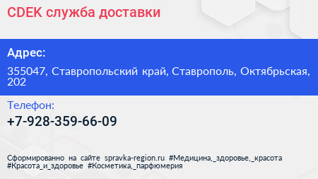 CDEK, служба доставки по адресу 355047, Ставропольский край, Ставрополь, Октябрьская, 202 в дальнейшем Организация, размещена в следующих категориях: