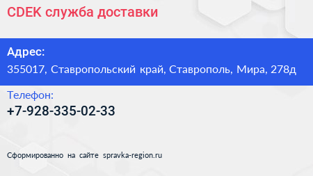 CDEK, служба доставки по адресу 355017, Ставропольский край, Ставрополь, Мира, 278д в дальнейшем Организация, размещена в следующих категориях: