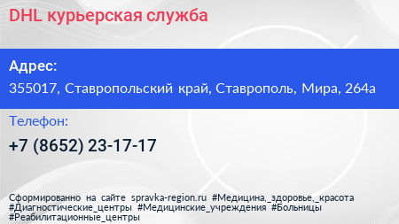 DHL, курьерская служба по адресу 355017, Ставропольский край, Ставрополь, Мира, 264а в дальнейшем Организация, размещена в следующих категориях: