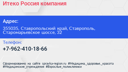 Итеко Россия, компания по адресу 355035, Ставропольский край, Ставрополь, Старомарьевское шоссе, 32 в дальнейшем Организация, размещена в следующих категориях: